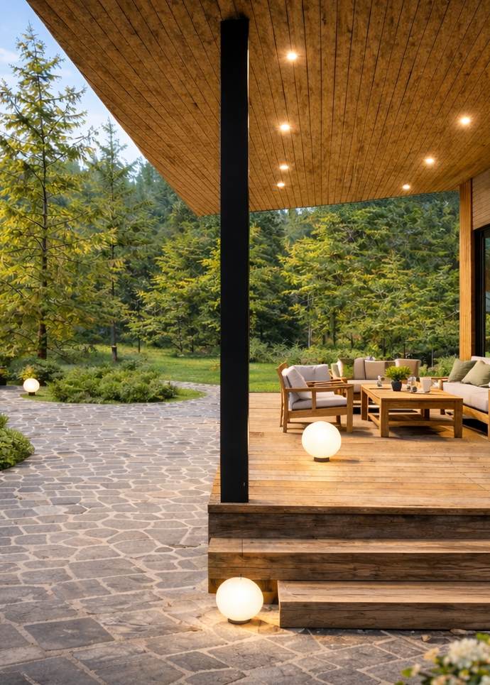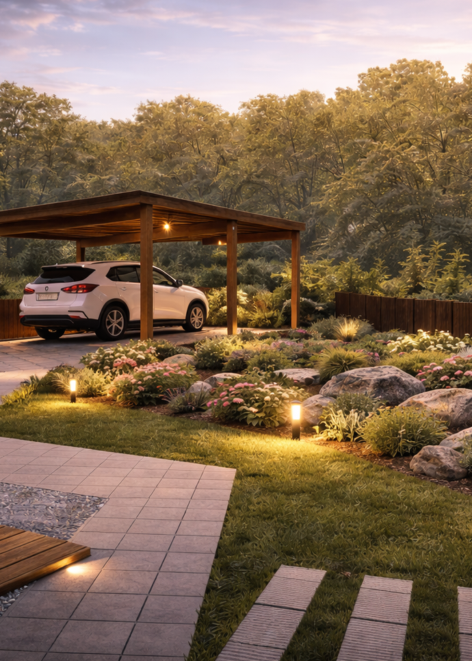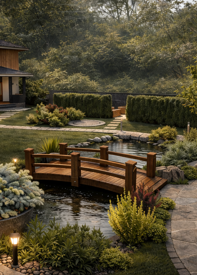 В каждом проекте мы проходим полный цикл: от первой идеи и ландшафтного проектирования до авторского надзора и посадки взрослых деревьев. Особое внимание уделяем инженерным системам: дренаж, автополив и освещение работают скрыто, но надежно обеспечивают комфорт.