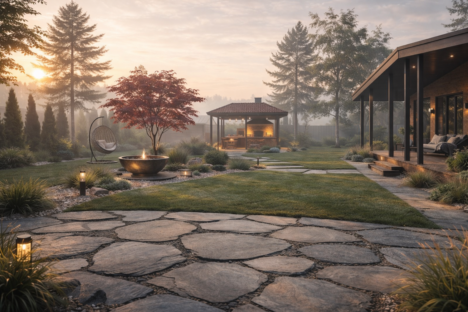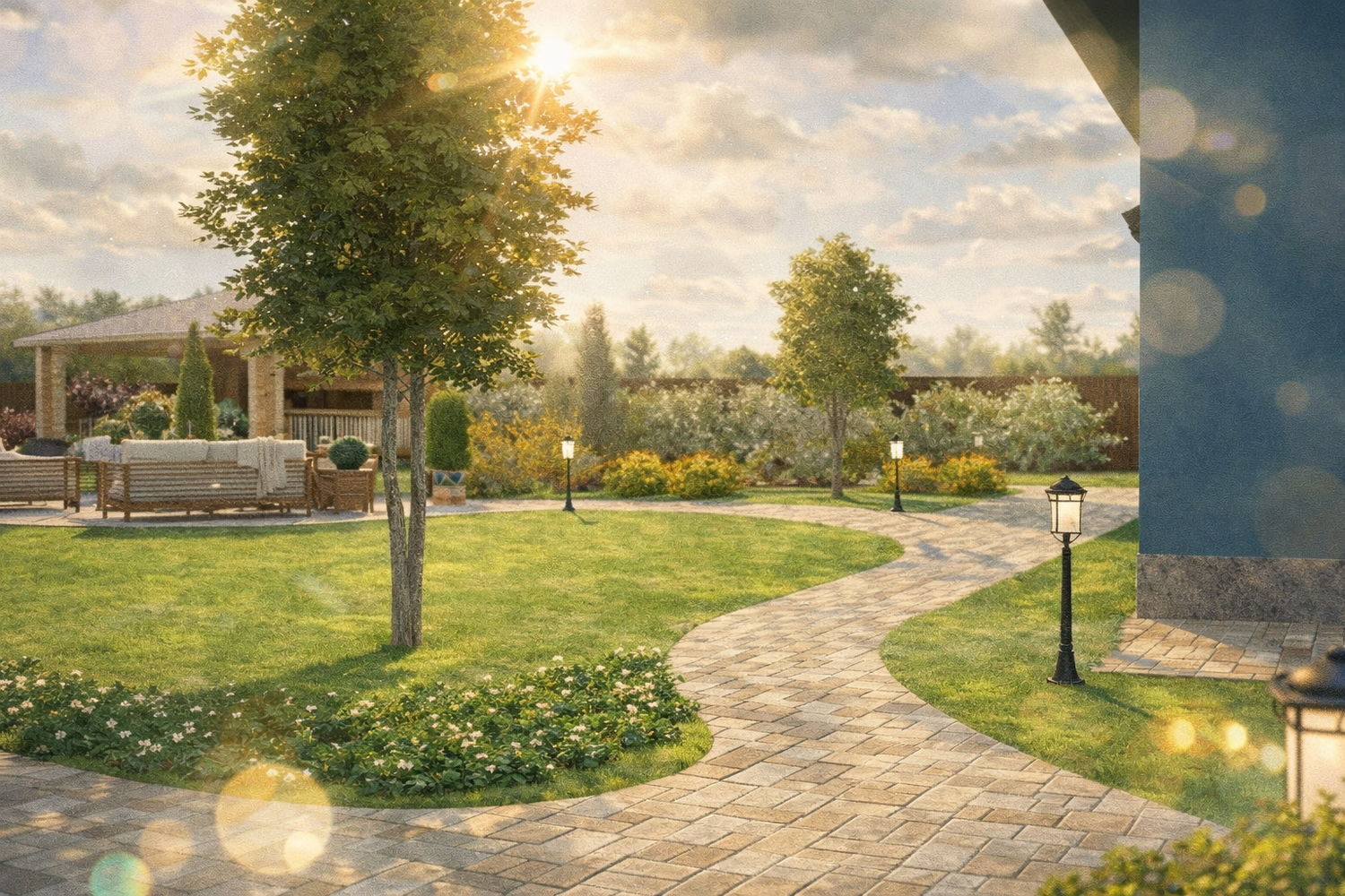 Наши работы включают благоустройство загородных домов и общественных зон. Мы учитываем сложный климат Северо-Запада, особенности грунтов и рельефа. От классических английских газонов до современных минималистичных садов – мы воплощаем любые стили.