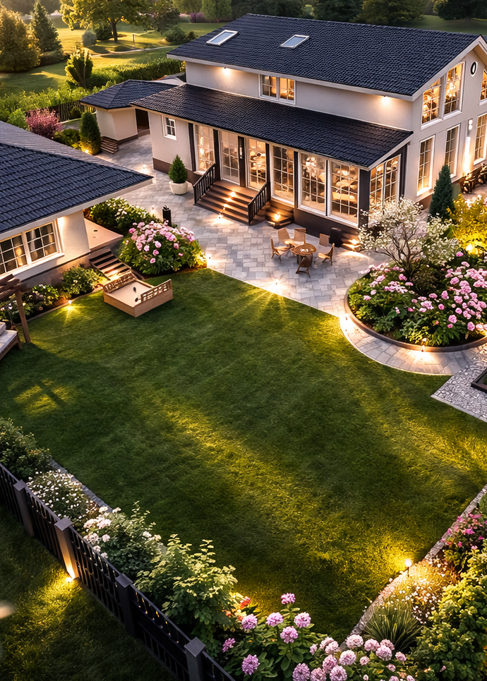 В каждом проекте мы проходим полный цикл: от первой идеи и ландшафтного проектирования до авторского надзора и посадки взрослых деревьев. Особое внимание уделяем инженерным системам: дренаж, автополив и освещение работают скрыто, но надежно обеспечивают комфорт.