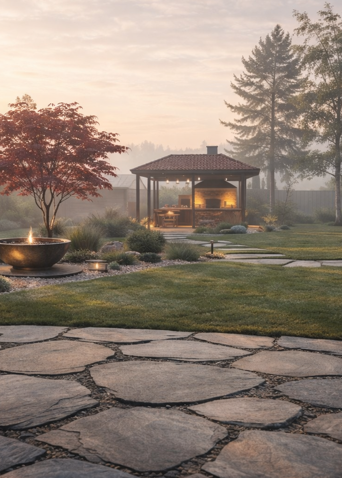 Наши работы включают благоустройство загородных домов и общественных зон. Мы учитываем сложный климат Северо-Запада, особенности грунтов и рельефа. От классических английских газонов до современных минималистичных садов – мы воплощаем любые стили.
